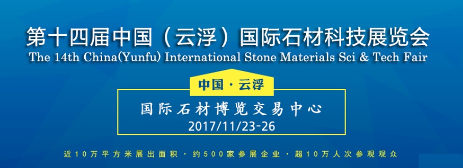 第十四屆中國(云浮)國際石材科技展覽會暨第八屆中國(云。┦幕(jié)將于2017年11月23日至26日在云浮國際石材博覽交易中心舉行。本屆展會展覽面積10萬平方米,預(yù)計本屆進(jìn)場參觀人數(shù)將超過10萬人次。屆時展會將充分展示國內(nèi)外石材荒料、天然石、大板和人造石制品、石工藝制品、石材加工機(jī)械設(shè)備等。